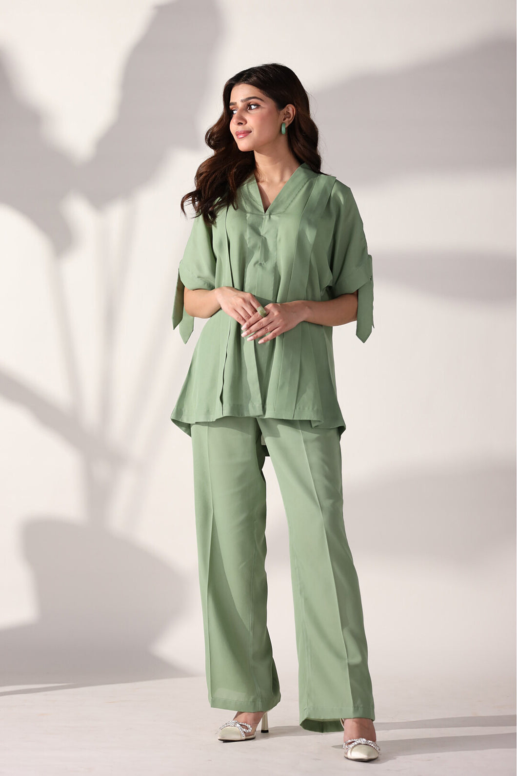 The Maple Co-ord Set, crafted from high-quality Crepe, offers a sleek and lightweight fit. Its versatile design makes it ideal for both casual and semi-formal occasions.