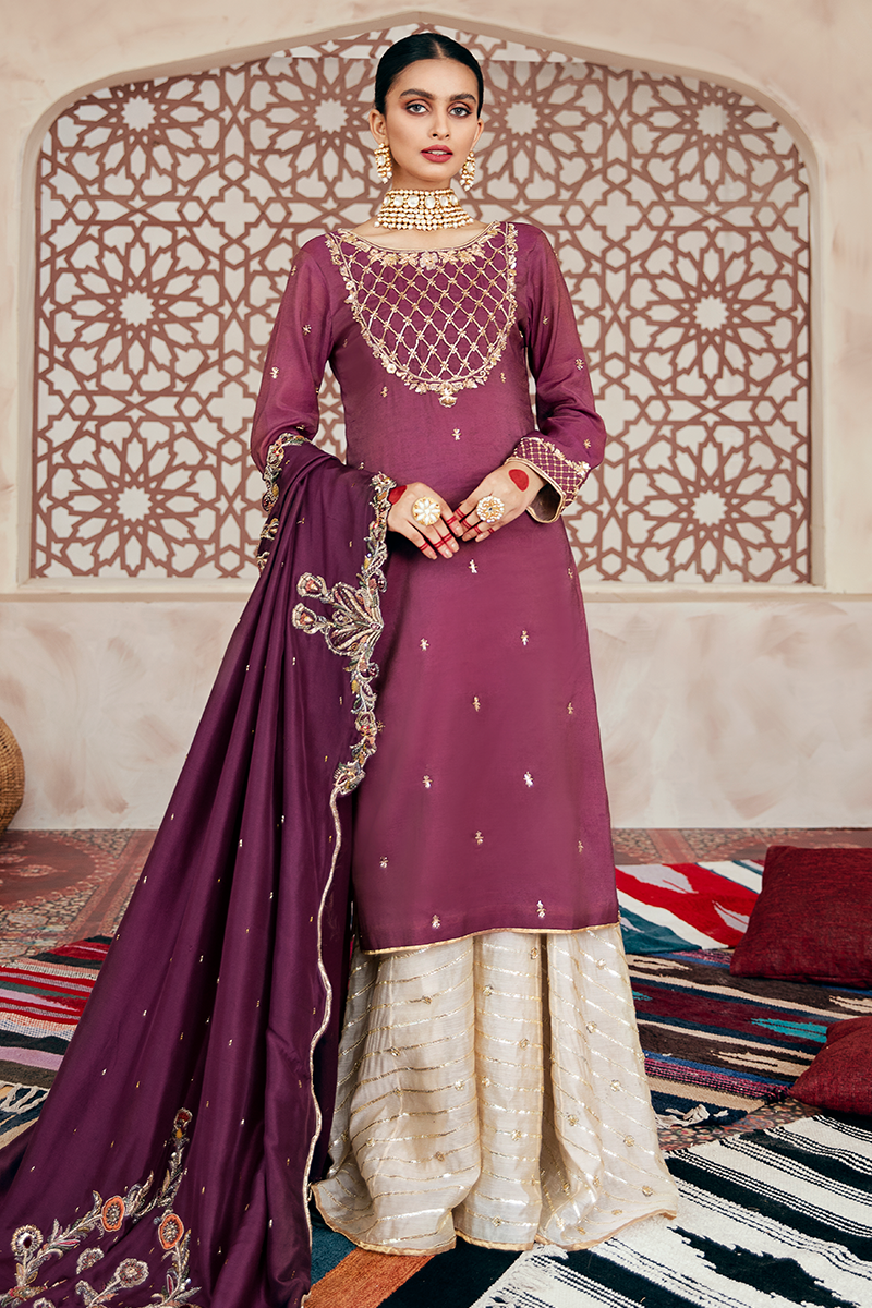 Shirt: Cotton Net Comprising Dabka Kora And Naqashi Hand Work