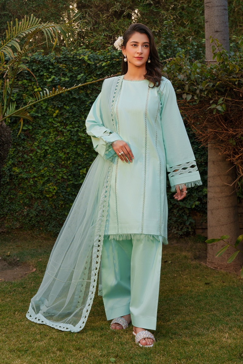 Product Description: Presenting Zarin, the perfect summer lawn ensemble, light and effortless, just like the cool sky. The smooth-line embroidery on the shirt adds a touch of elegance. It’s easy, breezy, and just right for the season.