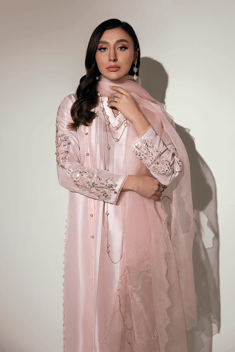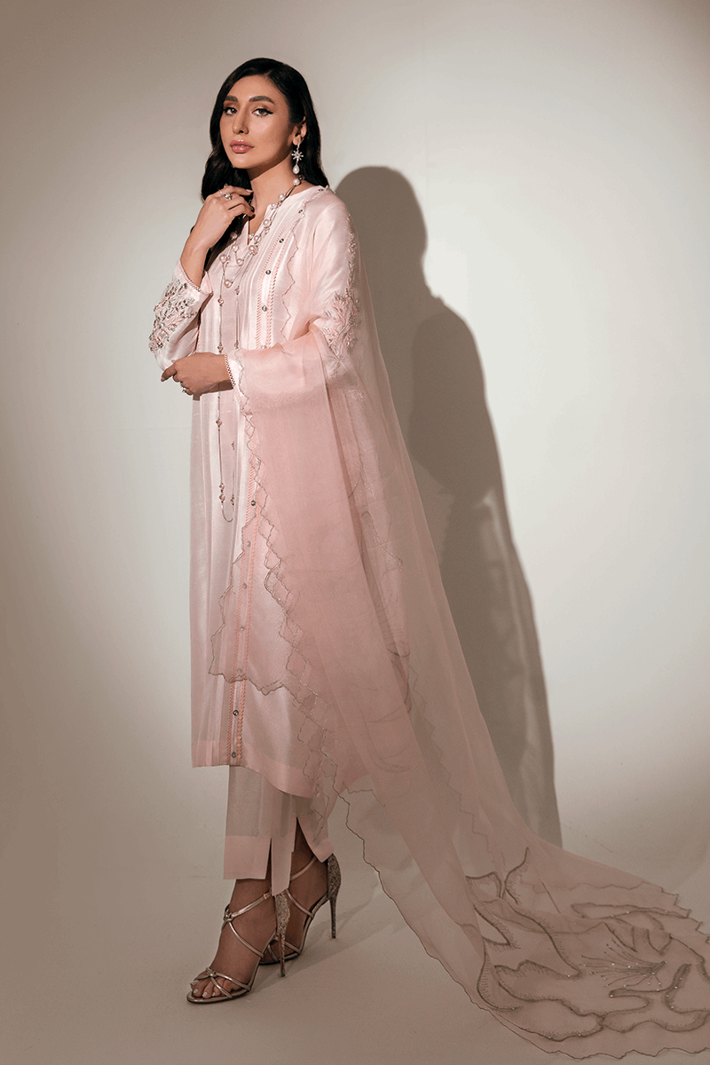 - Hand-Embroidered Organza Dupatta: Delicate beauty and airy elegance.