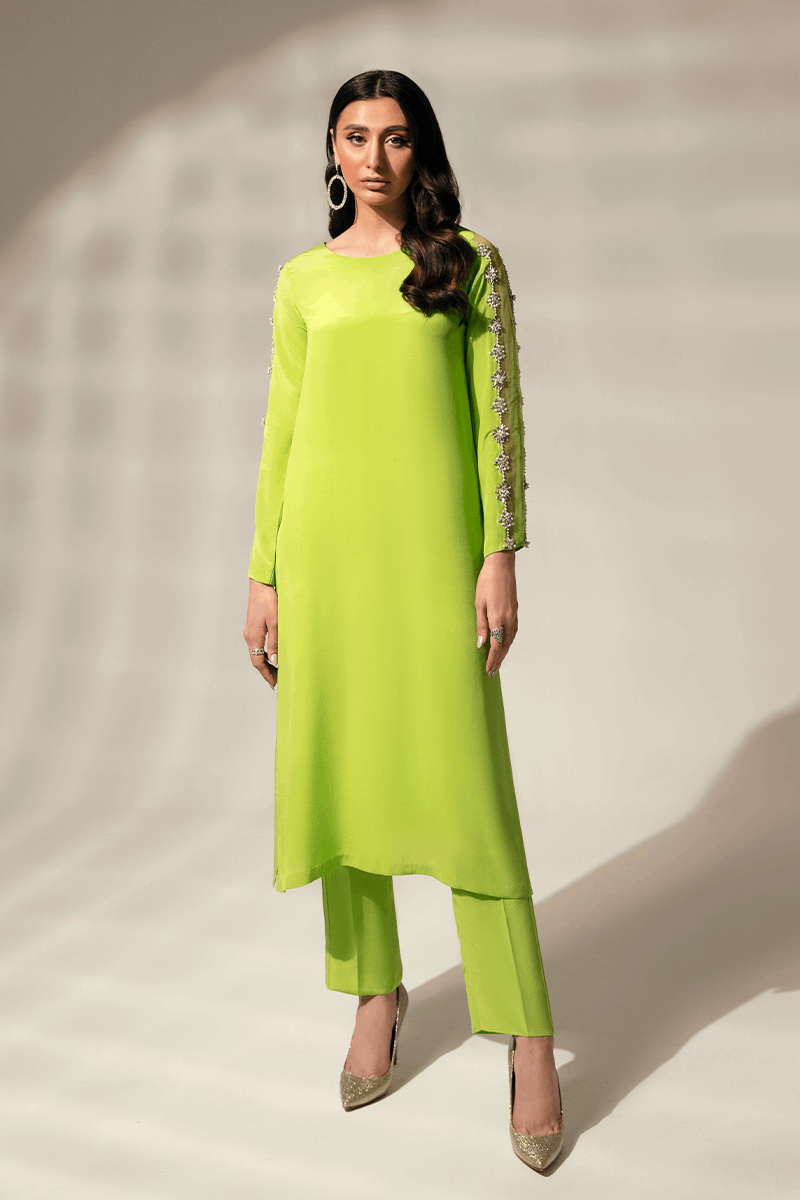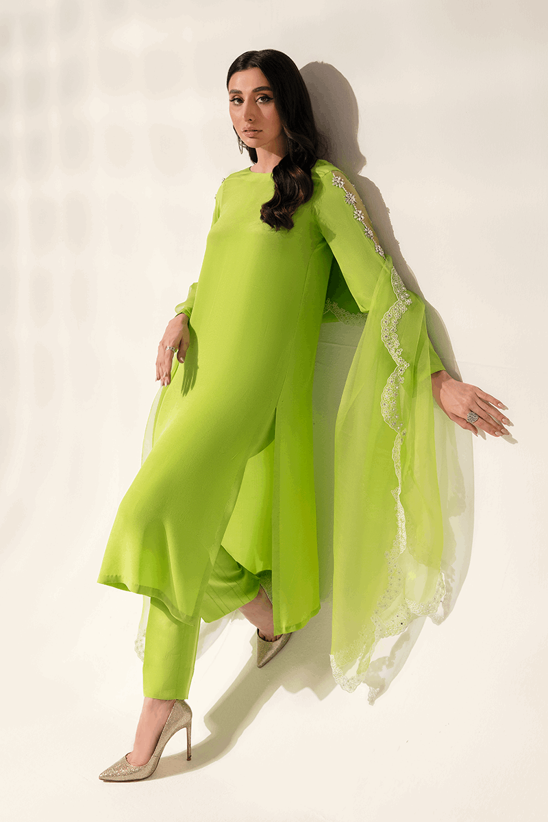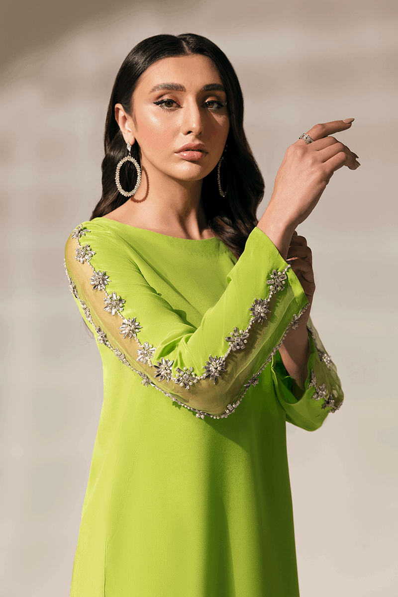 Embrace eye-catching elegance with the Everleigh Green Ensemble. This statement outfit features: