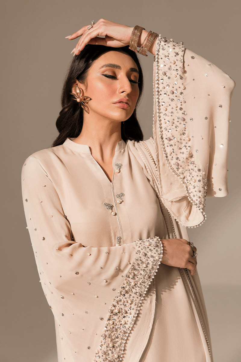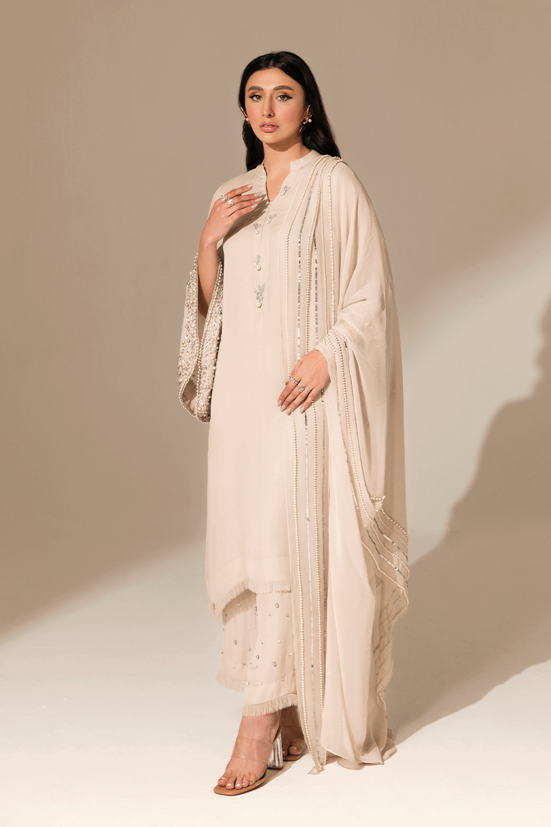 - Embellished Chiffon Dupatta: Airy and feminine with delicate embellishments.