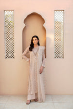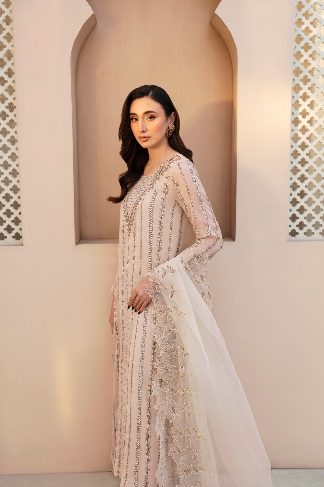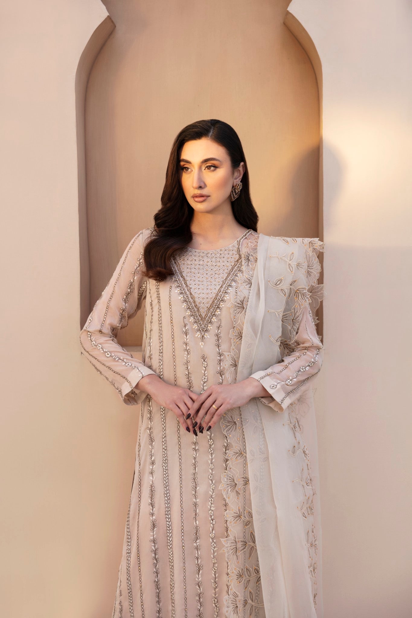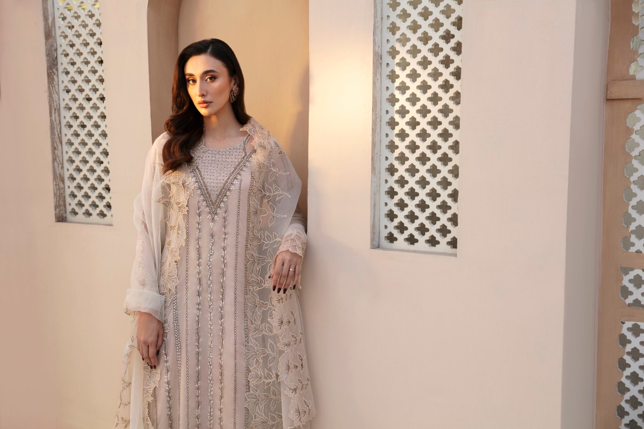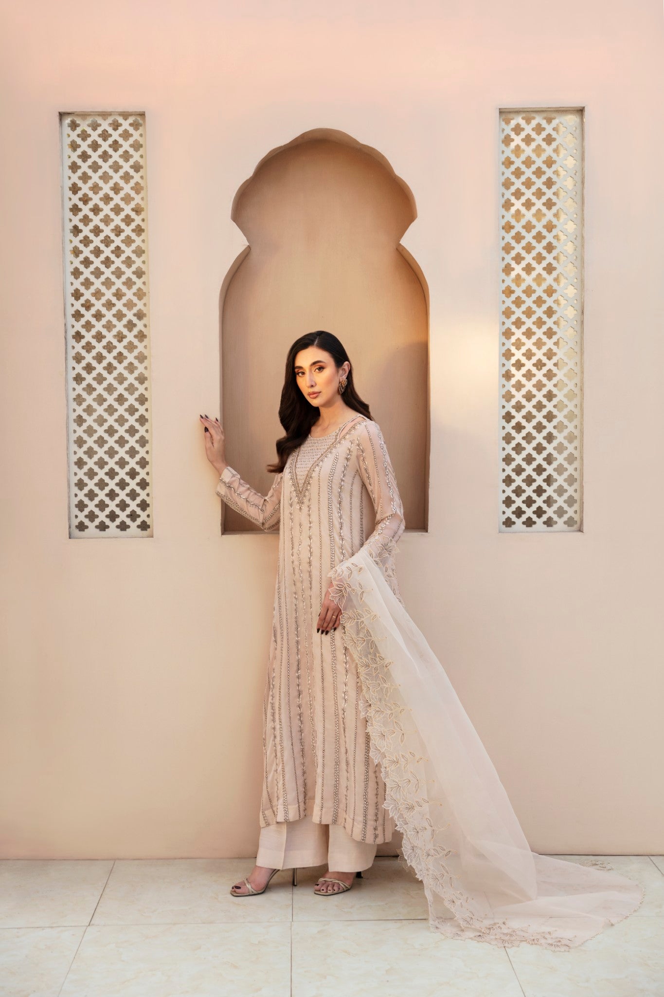 Description: The Meraki ensemble embodies the spirit of its namesake. Exquisite raw silk in both the shirt and trousers provides the foundation, while a captivating organza dupatta adds a touch of soulful beauty. This combination reflects a love of fine craftsmanship and timeless elegance.