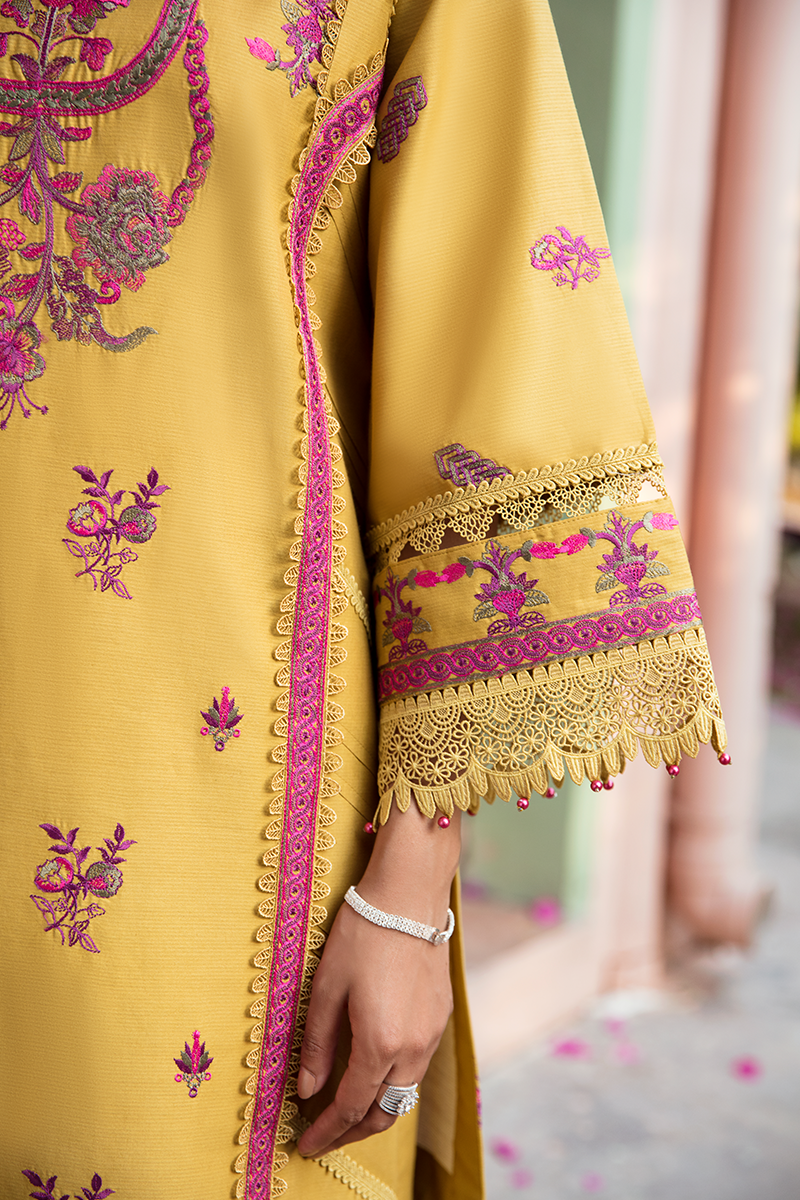 Craft a stunning outfit with the Mirha Embroidered Unstitched Suit. This exquisite collection features intricate embroidery on luxurious fabrics: