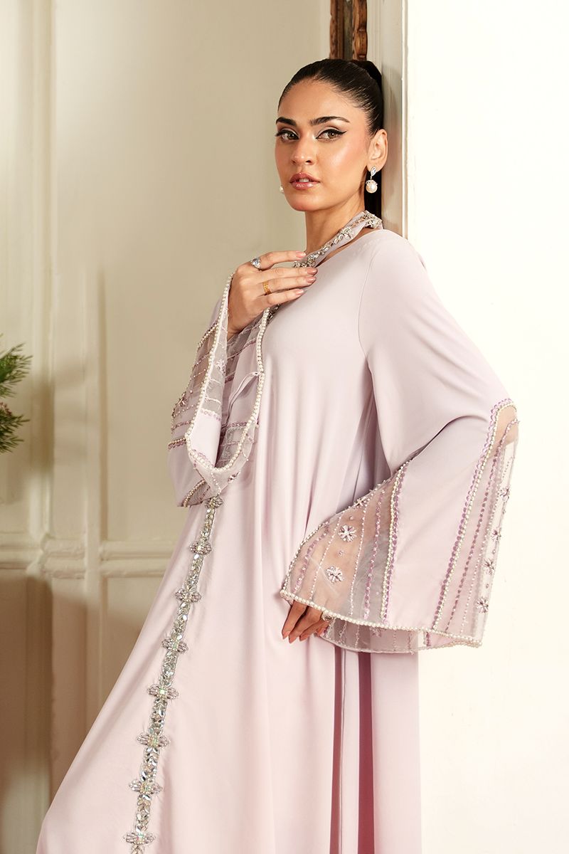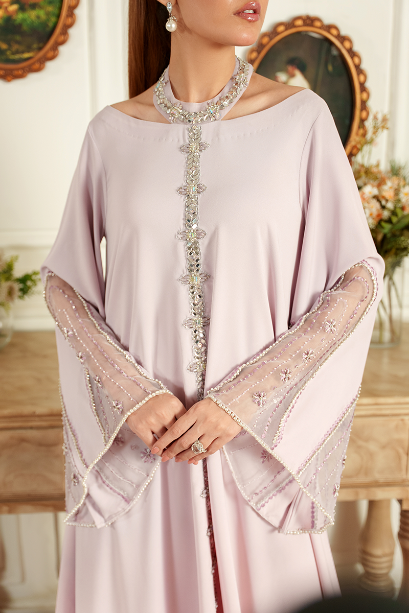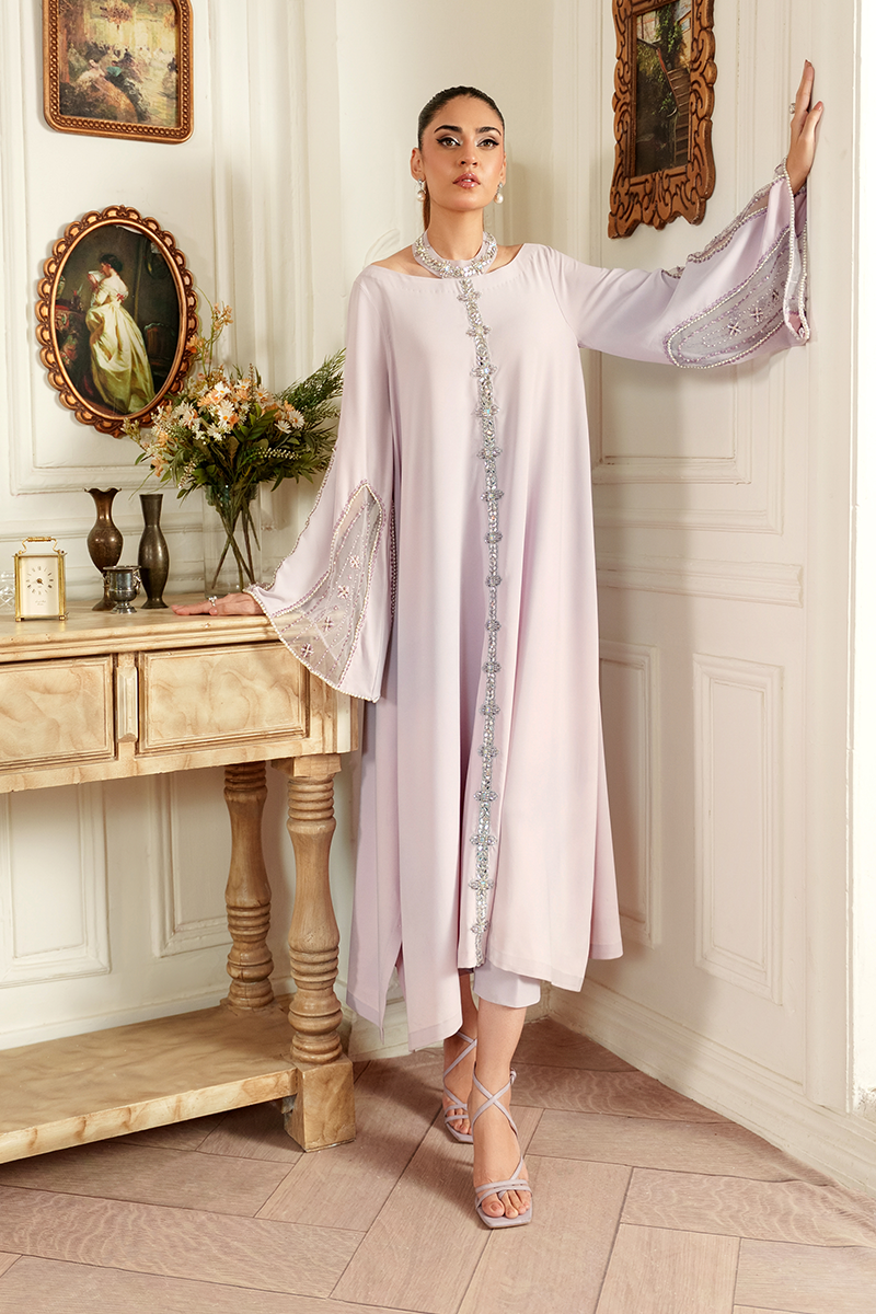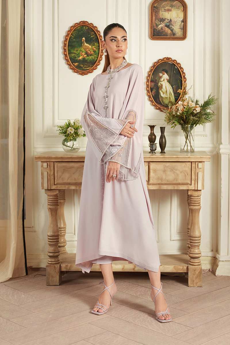 Paired with tailored culotte pants in the same dreamy lilac shade, Saph achieves a perfect balance between fluidity and structure, making it an ideal choice for those who appreciate understated glamour with an ethereal twist.