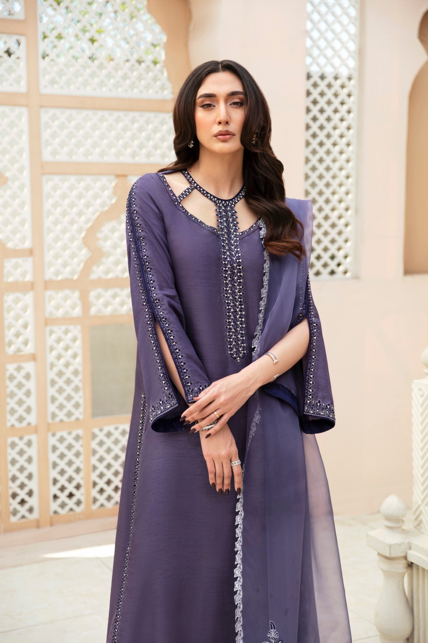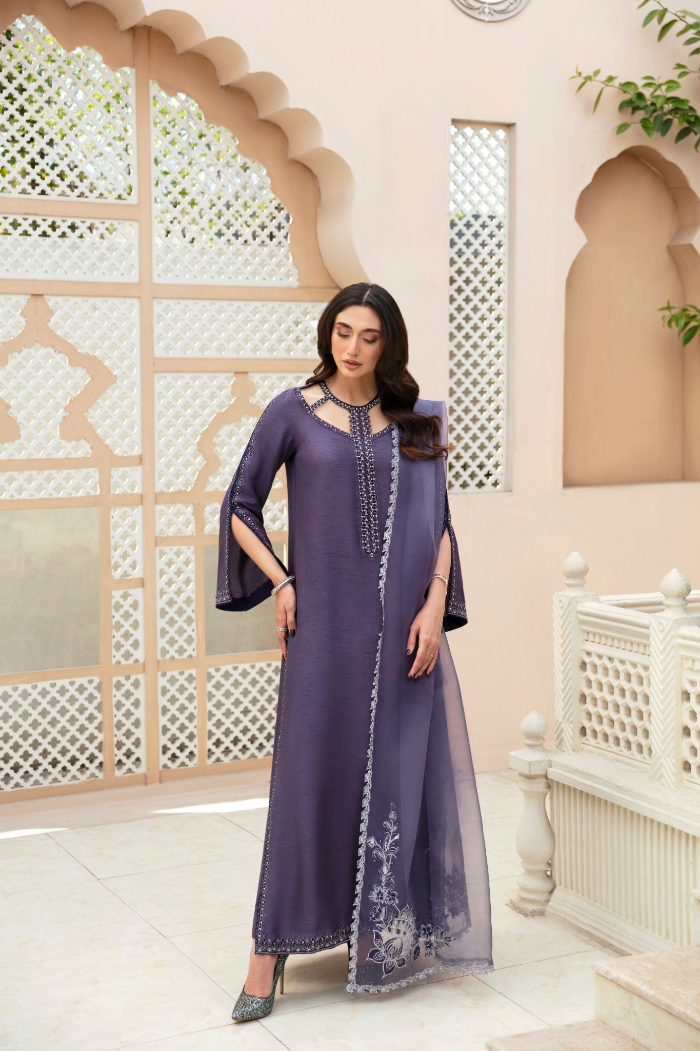 Description: The Talia ensemble embodies understated elegance. Crafted from luxurious raw silk for both the shirt and trousers, it is paired with a delicate organza dupatta. This combination of textures creates a sophisticated and timeless look, perfect for those who appreciate refined style.